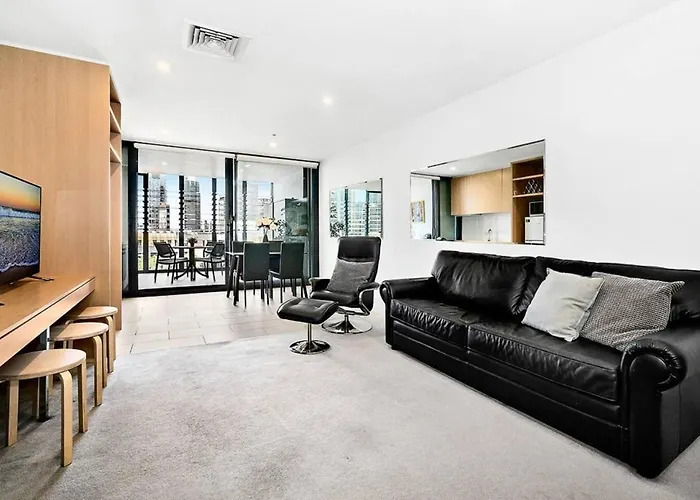 Gasten van het appartement kunnen het centrum van Melbourne bereiken met een wandeling van 10 minuten en de Crown Towers Melbourne bezoeken, op 550 meter ervandaan. Populaire plaatsen in de omgeving omvatten de Eureka Tower op loopafstand van circa 12 minuten en Melbourne 360 the Melbourne Observation Deck at Rialto in de buurt van het 1-slaapkamer appartement. Het Little Italy district ligt op een afstand van 2 km.